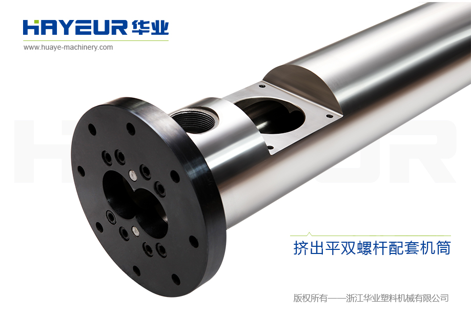 B、機筒選用42CrMo材質,經調質HB290-320,內鑲德國HPT1粉末合金套。合金厚度大于7毫米,硬度HRC58-62,機筒外殼可循環使用,磨損后可更換內部合金套。